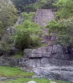Former quarry wall of the granodiorite in Baltimore County southeast of Ellicott City