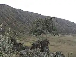 The land is punctuated by pyroclastic cones of Holocene age. The highest peak has an elevation of 2126 metres. It is located between Lake Elmenteita and Ol Doinyo Eburru volcano, on the southern boundary of the Soysambu Conservancy. Some of the prominent peaks include "Horseshoe Crater" and "Scout Hat Hill".[1] There are some lava tubes which show evidence of prehistoric occupation as grinding plates and stone bowls have been recovered by the local people in rudimentary excavation. These caves have been occupied by some of the refugees from the 2008 post-election violence in Kenya.