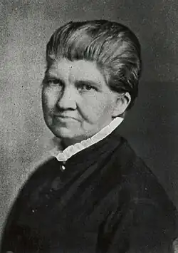 Elmina Drake Slenker (born Elizabeth Drake, December 23, 1827 – February 1, 1908) was a 19th-century American author, leader in the Freethought movement, and early sex reformer.[1][2][3] A regular contributor to anarchist journal Lucifer the Lightbearer, Slinker advocated a sexual practice called Dianism.[4] In 1887, Slenker was arrested for violating the Comstock laws which criminalized use of the US postal service to deliver sexually explicit content. She was jailed for several months, subjected to jury trial, and found guilty before finally being freed on a technicality.[5][6][7]
