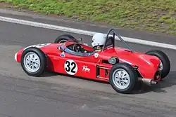 Elva produced a rear-engined FJ car, with B.M.C. engine, at the end of the 1960 season, the Elva 200.[33][34] Chuck Dietrich finished third at Silverstone in the BRDC British Empire Trophy race on 1 October.[35] In 1961 "an entirely new and rather experimental Elva-Ford" FJ-car debuted at Goodwood, making fastest lap, driven by Chris Meek.[36]