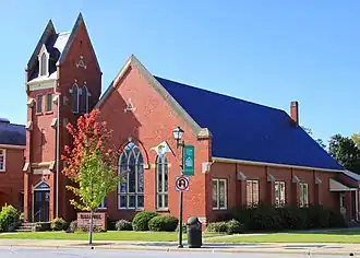 The Emanuel United Church of Christ, also known as Emanuel Reformed Church, is a historic United Church of Christ church building located at 329 E. Main St. in Lincolnton, Lincoln County, North Carolina. It was designed by Henry E. Bonitz and built in 1913. It is a rectangular Late Gothic Revival-style red-orange brick church with a four-stage corner tower. It features cast cement detailing, lancet arched windows, and buttresses with cement caps.[2]