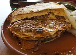 | Main ingredients | Tortillas, lard, refried beans and salsa |