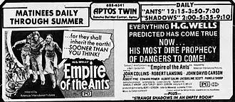 Empire of the Ants is a 1977 science fiction horror film co-written and directed by Bert I. Gordon.[3] Based very loosely on the 1905 short story "Empire of the Ants" by H. G. Wells, the film involves a group of prospective land buyers led by a land developer, pitted against large mutated ants.