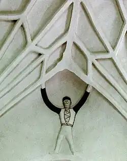 Further interior redecorations of the church took place in 1890 (destroying most of the remaining medieval frescos) and in 1925, again in a medievalist style. A more delicate renovation was carried out in 1955, when the remaining fresco fragments were also uncovered.[2] During renovation works carried out in 2013, several coins (including some from the Middle Ages) and some graves, including children's graves, were found under the church floor.[4]
