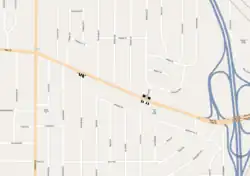 Today, Main Street is a four-lane road running east–west through Snyder connecting Williamsville (the other side of Interstate 290, known as the Youngman Expressway) to points westward such as the neighboring hamlet of Eggertsville and downtown Buffalo. The entranceway is located proximate to large residential areas of trees and grass, 1920s-built subdivisions flanking a wide central median.[2] It is situated three blocks east of Harlem Road (New York State Route 240). Across Main Street and northeast from the Entranceway is the Eggertsville-Snyder Branch Library of the Buffalo & Erie County Public Library located at 4622 Main Street.[5][6] Each side of the median serves one-way traffic. The entranceways sit on the two south side corners of this T-junction intersection.[2]