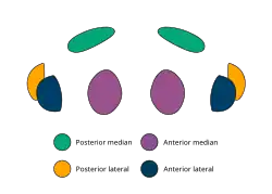 They have eight eyes, all approximately equal in size. The AME are separated by half their diameter and the PME typically separated by their diameter.[3]