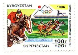 ![]() Kyrgyzstan stamp commemorating 1996 Olympic equestrianism | ||||||||||