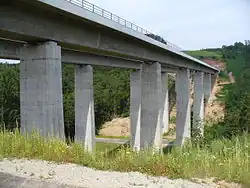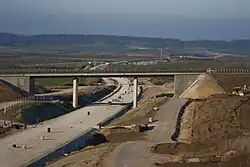 The six viaducts have a total length of 14.4 km (8.9 mi).[9] Originally they were to be 11.3 km (7.0 mi) long.[19] In 1994, five major bridges were planned with a length of around ten kilometres.[20]