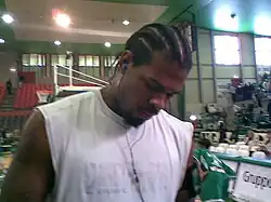 Williams started his junior year with an improved physical condition, having lost weight, and reached 271 pounds, a significant drop from his freshman weight of 340.[6][15][19] He was also invited by Kelvin Sampson to participate in a training camp with the Under-20 USA national team, but was ultimately unable to join the team due to illness.[3][20] He started 32 out of 33 games and recorded a new career-high with 29 points against Cincinnati on January 22, 2005, and on February 2 against Duke he broke a Wake Forest record for offensive rebounds in a single game with 11.[3] On January 31 he received another ACC Player of the Week award; he led the entire ACC conference in field goal percentage with .630, which was also good for third place in the entire Division I.[4][21] The Demon Deacons reached the second round of the NCAA tournament, where they were eliminated by West Virginia despite a 23-points, 12-rebounds performance by Williams.[4] He also managed to improve on fouling,[6] recording less fouls compared to his previous 2 years, and fouled out only twice in the whole season.[3] At the end of the season he was named in the All-ACC second team[19] and was an honorable mention AP All-American.