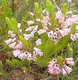 Erica filamentosa is a plant belonging to the genus Erica and forming part of the fynbos.[1] The species is endemic to the Western Cape where it occurs from Swellendam to Suurbraak. The plant's range is 24 km² and there are only two populations and its habitat is threatened by agricultural activities.[2]