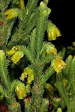 Erica foliacea is a plant belonging to the genus Erica and forming part of the fynbos.[1] The species is endemic to the Western Cape and occurs in the mountains between Betty's Bay and Bot River. The plant's habitat is threatened by invasive plants.[2]
