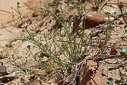 Erigeron canaani is a perennial herb up to 30 cm (12 inches) tall, producing a taproot. One plant can produce several flower heads, sometimes one per branch, sometimes in groups of 2 or 3. Each head has 15–22 white or purpleray florets, plus numerous small yellow disc florets.[2]