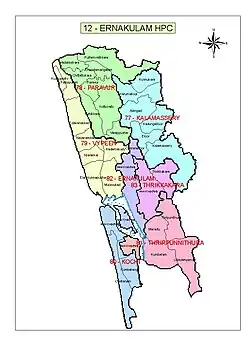 | Assembly constituencies | Kalamassery Paravur Vypin Kochi Thrippunithura Ernakulam Thrikkakara |