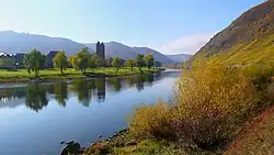 The municipality as it stands today takes its shape mainly from the building of the church and the laying out of the Moselstraße – the road alongside the Moselle – in the mid 19th century. Ernst has been a winegrowing centre for 2,000 years, with 14 full-time winemakers still at the trade today and another 10 who undertake it as a secondary occupation.[4]