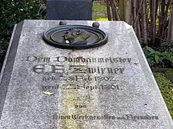 Zwirner's best building is probably the church of St. Apollinaris at Remagen,[3] to which, however, the same objection of monotony of plan has been made. He also built a church at Mülheim on the Rhine, and one at Elberfeld. He restored the castle of Argenfels on the Rhine, built the castle of Herdringen in the style of the ancient fortress castles on the Rhine for Count von Fürstenberg, and also the Moyland Castle near Cleves. He designed a mausoleum for the family of Count Ernst Zur Lippe-Biesterfeld on the grounds of the Klosterruine Heisterbach near Königswinter, and built the Rathaus (Town Hall) in Kolberg, Pomerania.[4] His last work was the magnificent, 1861 Moorish Revival Glockengasse Synagogue at Cologne. He died at Cologne in 1861. He is buried in the Melaten-Friedhof.[2]