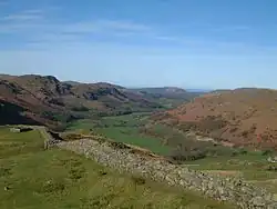 The valley has been relatively sparsely populated for most of its history. The River Esk formed the boundary between the ancient parishes of St Bees to the north and Millom to the south.[5] St Catherine's Church was built in the 14th century on the north bank of the Esk near Boot, to serve as a chapel of ease to the parish church at St Bees, some 14 miles (23 km) away.[6][7]