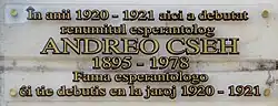 A plaque in both Romanian and Esperanto commemorating Andreo Cseh in Sibiu