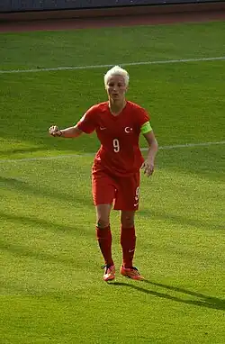 Erol scored a winner over Northern Ireland in the Euro 2009 qualifying.[23] She is also the owner of four goals scored in friendly matches against Bulgarian, Russian and Greek national women.[24][25][26][27]