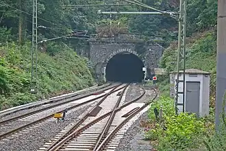 The Essen-Werden to Essen railway is an electrified railway line in the German state of North Rhine-Westphalia. It is a main line railway with two tracks, except for the Stadtwald Tunnel, running through the metropolitan area of Essen and connecting Essen-Werden station with Essen Hauptbahnhof.