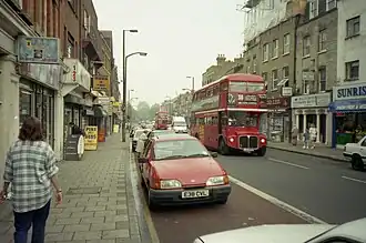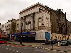 The Carlton Cinema was at Nos. 161-169. It was built in 1930 in an art deco style by George Coles, using an Egyptian style facade. It was subsequently used as a bingo hall, and then a place of worship. The building is Grade II* listed.[7]