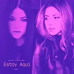 On January 30, 2025 Shakira released a new version of the track featuring Brazilian DJ Papatinho under the title "Estoy Aquí (Remix)" [31] or "Estoy Aquí (MTG Remix)"[32] depending on the streaming platform. The remixed version is much shorter than the original song and it features new vocals and production by the singer. In a statement shared across her social media accounts, Shakira said this was released as a gift to her Brazilian fans explaining that this is "the song that made me fall in love with your country" and that it was an honor to start her Las Mujeres Ya No Lloran World Tour in Rio.[33] The cover of the single utilizes a purple filter and it shows Shakira looking at what appears to be a mirror but instead of looking at her reflection, what is seen is the picture used on the cover of her 1995 album Pies Descalzos.