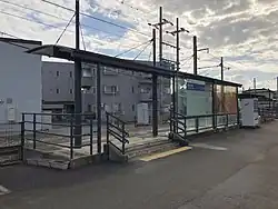 The station was originally opened in 1924 as a part of the Fugan Railway.[1] It was later requisitioned by the Japanese government during WWII and became a part of Japanese National Railways. It was during this period the station became a part of the Toyamakō line.[1] It continued to be operated by the West Japan Railway Company after privatisation. In 2006 the station reopened as a part of the new LRT line run by the Toyama Chihō Railway.