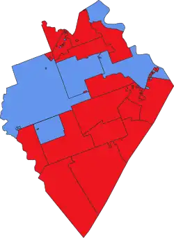 Winning party in each polling division of Etobicoke—Lakeshore at the 2022 Ontario general election