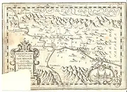 In any case, the association between the name of this watercourse and that of the region has been raised since ancient times. For example, the chronicler Florian de Ocampo already pointed it out in 1544,[21] as did Rodrigo Méndez Silva in a work published in 1675, writing the phrase «la provincia Riojana, afsí nombrada por el Río Oja, territorio de los regalados, agradables y abundofos de Efpaña, con falutiferos baños de Arnedillo....»[36] or Father Murillo Velarde in 1752 said that "Logroño is the head of La Rioja, said of the river Hoja".[37]