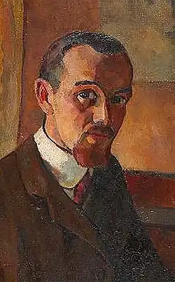 He was diagnosed with tuberculosis in 1900 and his education was interrupted by numerous stays in sanatoria.[1] Despite this, he was able to travel to Paris in 1907, where he took a course in plein aire painting at a private school and copied works at the Louvre. He was a regular patron at the Café Du Dôme,[2] where his associates included Friedrich Ahlers-Hestermann, Oskar Moll, Jules Pascin, Elisabeth Epstein and Sonia Terk. His exhibitions included several showings at the Salon d’Automne and the Salon des Indépendants.