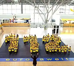 Stuttgart Airport (Germany): Pupils of the music schools Leinfelden-Echterdingen, Schönbuch and Stuttgart are playing the European anthem at the occasion of European 112 Day on 11 February 2014.