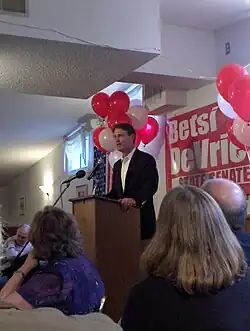 Bayh campaigns for New Hampshire State Representative Betsi DeVries' State Senate campaign in March 2006