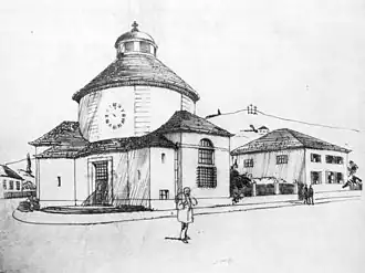 Sketch of Evangelical church by architect Hugo Ehrlich, 1928.