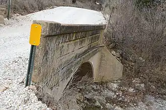 The Evansville-Dutch Mills Road Bridge is a historic bridge in rural western Washington County, Arkansas. It is a single-span concrete filled-spandrel arch bridge, which carries Dutch Mills Road (County Road 464) over Whitaker Branch South south of the village of Dutch Mills The bridge was built in 1936 by the Luten Bridge Company, and was one of its last commissions in the county. The arch spans 28 feet (8.5 m) and the bridge has a total structure length of 30 feet (9.1 m). The bridge was built with a unique Luten Company design that used rings to strengthen the connection between the piers and spandrel walls, enabling a reduced amount of material while maintaining the strength of the bridge.[2]