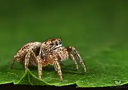 In 1976, Jerzy Prószyński placed the genus Evarcha in the subfamily Pelleninae, along with the genera Bianor and Pellenes.[4] In Wayne Maddison's 2015 study of spider phylogenetic classification, the genus Evarcha was moved to the subtribe Plexippina.[5] This is a member of the tribe Plexippini, in the subclade Simonida in the clade Saltafresia.[6] It is closely related to the genera Hyllus and Plexippus.[7] Analysis of protein-coding genes showed it was particularly related to Telamonia.[8] In the following year, Prószyński added the genus to a group of genera named Evarchines, named after the genus, along with Hasarinella and Nigorella based on similarities in the spiders' copulatory organs.[9]