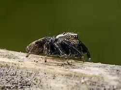In 1976, Jerzy Prószyński placed the genus Evarcha in the subfamily Pelleninae, along with the genera Bianor and Pellenes.[5] In Wayne Maddison's 2015 study of spider phylogenetic classification, the genus Evarcha was moved to the subtribe Plexippina.[6] This is a member of the tribe Plexippini, in the subclade Simonida in the clade Saltafresia.[7] It is closely related to the genera Hyllus and Plexippus.[8] Analysis of protein-coding genes showed it was particularly related to Telamonia.[9] In the following year, Prószyński added the genus to a group of genera named Evarchines, named after the genus, along with Hasarinella and Nigorella based on similarities in the spiders' copulatory organs.[10]