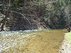 Evitts Creek is 30.2 miles (48.6 km) long.[1] It flows from southwestern Pennsylvania through western Maryland. The stream rises in central Bedford County, Pennsylvania, and flows southwest between the ridges of Evitts Mountain and Wills Mountain, through the Lake Koon and Lake Gordon reservoirs and into the North Branch Potomac River southeast of Cumberland at 39°55'N 78°36'W.