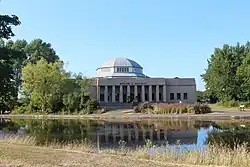 This North East Coast Exhibition of Industry, Science and Art was held at the Exhibition Park from May to October 1929 and was opened by the Prince of Wales on 14 May 1929.[4] It was a symbol of pride and industrial success of the region and at the same time an advertisement for local industry and commerce. The Palace of Arts is the only building still remaining in the park today from this exhibition.[5]