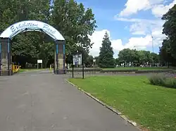 The name Exhibition Park was first used during the Jubilee Exhibition of 1887 but the old name of Bull Park remained for some time. The only remaining item from the 1887 Exhibition is the grade II listed[2] bandstand,[3] which dates from 1875.[2]