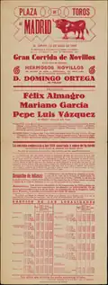 Poster advertising the upcoming corrida at which Almagro would be killed.