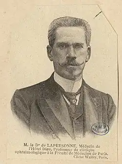 As an ophthalmologist, Lapersonne made contributions in his investigations of syphilitic optic neuritis,[3][4] and ophthalmoneuromyelitis (Devic's disease).[5][6] "De Lapersonne's capsulo-iridotome", a punch forceps used in eye surgery, is named after him.[7][8]