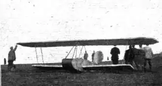 The Stehaufchen was a single bay biplane with two spar wings of unequal span mounted without stagger but with an unusually large interplane gap of 1.50 m (59 in). The lower wing was mounted on the lower fuselage and the upper one held high above it by three pairs of inverted V-struts, one pair leaning backwards from the nose to the forward spar and the two other running vertically from the upper fuselage longerons to the two spars on the centre line. On each side a pair of parallel, slightly outward leaning interplane struts connected the forward and rear spars from the lower tips and the bays were cross braced with wires. Both wings were roughly rectangular in plan and slightly swept (1.2°); only the lower one carried dihedral (2°). The ratio of upper to lower wing areas was about 1.6:1. The wings, like the rest of the aircraft had a wooden structure: the spars were both wooden boxes and the leading edges were double ply skinned. Elsewhere the wings were fabric covered. Roll control was by wing warping on both planes.[1]