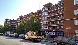 It is a six-storey building of council housing. The Twentieth Century Society notes "the lavish treatment of its Northern elevation".[1] It is a red brick building containing an interesting examples of the Mendelsohn curve of Art Deco, Streamline Moderne architecture.