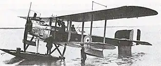 The Royal Navy was an early leader in carrier aviation and in the autumn of 1914, purchased the liner Campania for conversion into a seaplane carrier. Operating seaplanes required the carrier to stop to hoist the aircraft out- and in-board by crane, leaving the ship exceedingly vulnerable to U-boat attacks and the Admiralty began to seek alternatives.[2] By the middle of 1916, Campania had been fitted with a 200 ft (61 m) flight deck forward on which, experiments were being carried out in launching aircraft.[1] The Admiralty issued a specification for a purpose-built, two-seat patrol and reconnaissance aircraft.