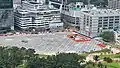 Part of the construction site at the foot of Four Seasons Place (black skyscraper) in December 2018