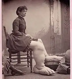 Fanny Mills (August 30, 1860 – May 3, 1899), known under the stage name as the "Ohio Big Foot Girl", was a British-American woman who achieved fame as an entertainment attraction in dime museums throughout the 1880s. Mills suffered from the rare disease called Milroy's disease that caused her lower limbs to grow to enormous size.