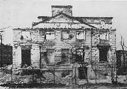 In 1900, the palace was inherited by nobleman August Potocki, who, while never living there himself, had accommodated there the less wealthy members of his family.[7][6] After the First World War, the palace housed a children's hospital, and later accommodation for the officers of the Polish Armed Forces.[6] During the Second World War, in the place was located the kitchen on the Central Welfare Council, a charity helping impoverished and people affected by the ongoing conflict.[7] During the war, in palace also lived members of the Polish aristocracy who had fled the Soviet Union. During the Second World War, the upper floor and the roof of the building were damaged and the palace had burned down in 1944 during the Warsaw Uprising.[6][8]