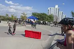 Far Rockaway Skate Park is a public skate park on the Rockaway Beach and Boardwalk in Far Rockaway, Queens, New York City, opened in 2011.[1][2][3][4] The park is open dawn till dusk and is unsupervised.[5] In addition to skateboarding, scooters and inline skates are permitted.[5] The park was built over a large parking lot that was reduced in size but not eliminated.[6] The skatepark project was part of a larger renovation of O'Donohue Park that began in 2010 and was completed in 2011.[6] The park was designed by SITE Design Group and built by California Skateparks.[2]