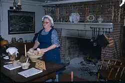 A farmhouse kitchen is a kitchen room designed for food preparation, dining and a sociable space. Typical of poorer farmhouses throughout the Middle Ages where rooms were limited, wealthier households would separate the smoke of the kitchen from the dining and entertaining areas. Farmhouse kitchens were also known as smoke kitchens before extractor hoods. Extractor hoods and modern stoves have allowed the reintroduction of farmhouse kitchen to architecture it is now the most popular kitchen design with various island set ups used for dining and storage.[1] Household kitchen design often assumes that the functionality of the room includes cooking, dining and socializing but the term 'kitchen' includes rooms dedicated to cooking.[2]