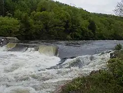 The river has several whitewater sections that are popular for tubing and kayaking. One of these, the colloquial "Upper Farmington" section of the West Branch in New Boston, Massachusetts, is about 7 miles (11 km) long. It is Class 2 through farm and woods scenery to an iron bridge, where kayak and canoe slalom races are held.[17] A second whitewater section is found in Tariffville, Connecticut, consisting of 1.5 miles (2.4 km) of technical Class 2 and Class 3 water with heavy currents.[18] Other whitewater areas include Satan's Kingdom in New Hartford, Connecticut,[19] which is also popular with tubers, and the Crystal Rapids section in Collinsville and Unionville, Connecticut, which offers 4 miles (6.4 km) of Class 2 waters.[20]