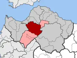 Farres (Greek: Φαρρές) is a former municipality in Achaea, West Greece, Greece. Since the 2011 local government reform, it is part of the municipality Erymanthos, of which it is a municipal unit.[2] The municipal unit has an area of 241.848 km2.[3] The municipality of Farres existed between 1835 and 1912, and again between 1998 and 2011. Its seat of administration was in the town Chalandritsa. Farres is situated in the centre of Achaea, on the upper courses of the rivers Peiros and Parapeiros. Towards the southeast (Mount Erymanthos) and northeast (Panachaiko) the terrain is increasingly mountainous. It is located about 15 km south of Patras and 30 km west of Kalavryta. The Greek National Road 33 (Patras - Tripoli) runs through western Farres.